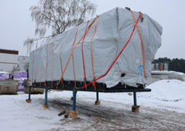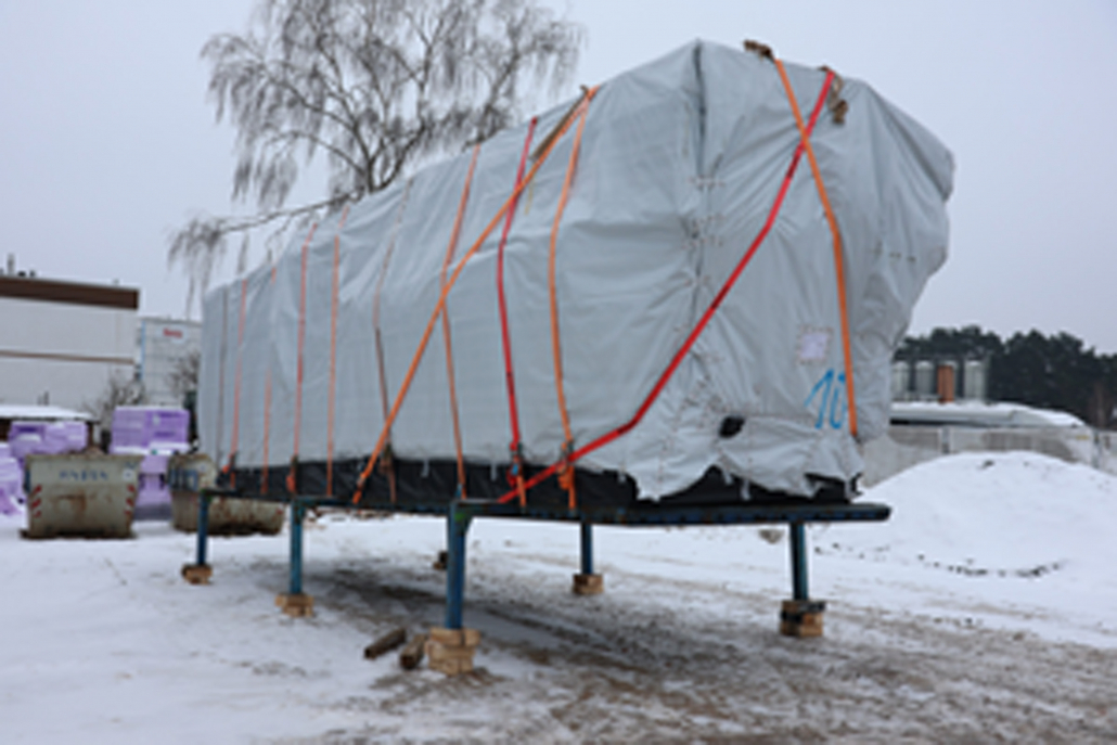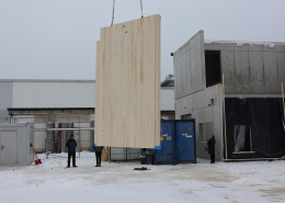 mitten im schnee geht es nun los mit der montage von wänden und deckenplatten.