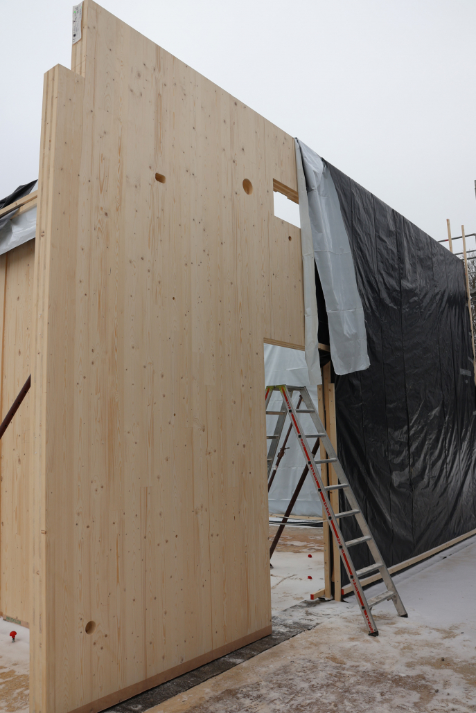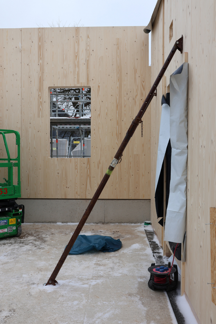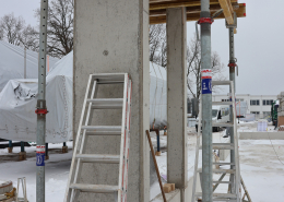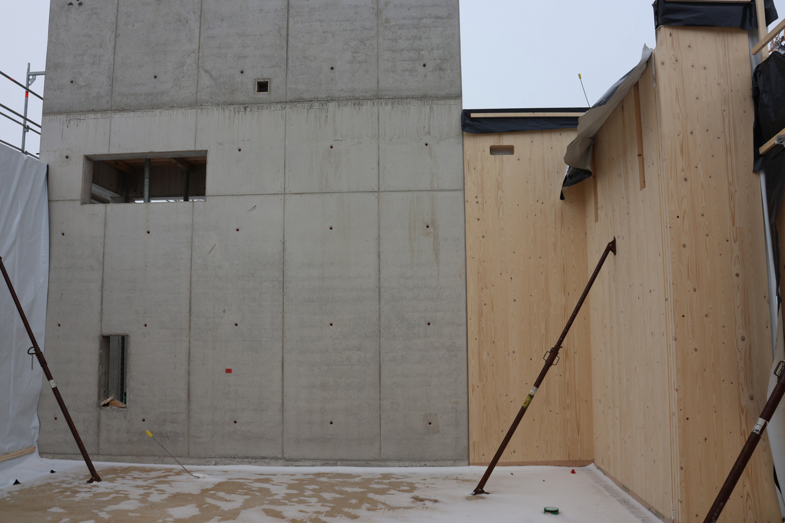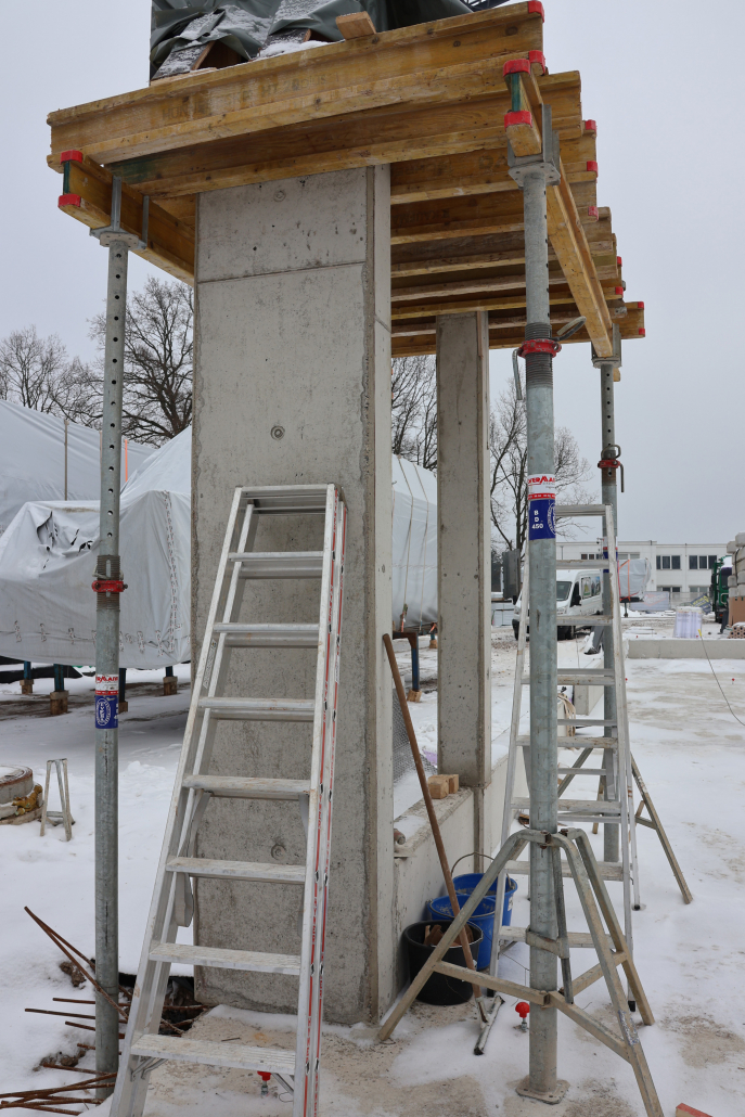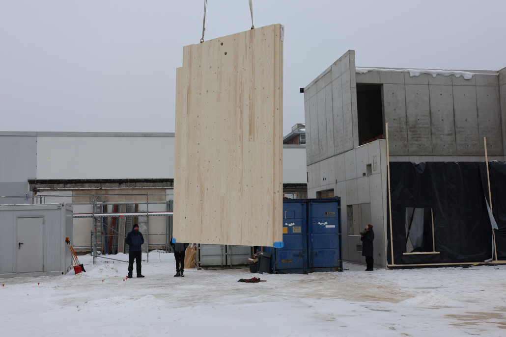 nach der fertigstellung der bodenplatte und des aussteifenden kerns kann es nun mit dem holz-rohbau weitergehen.